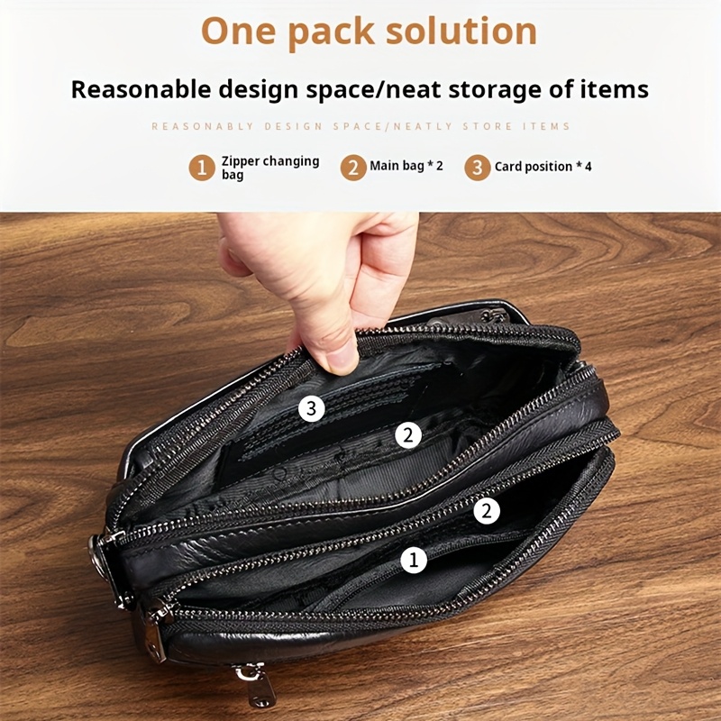 New men's leather handbag with large capacity wallet