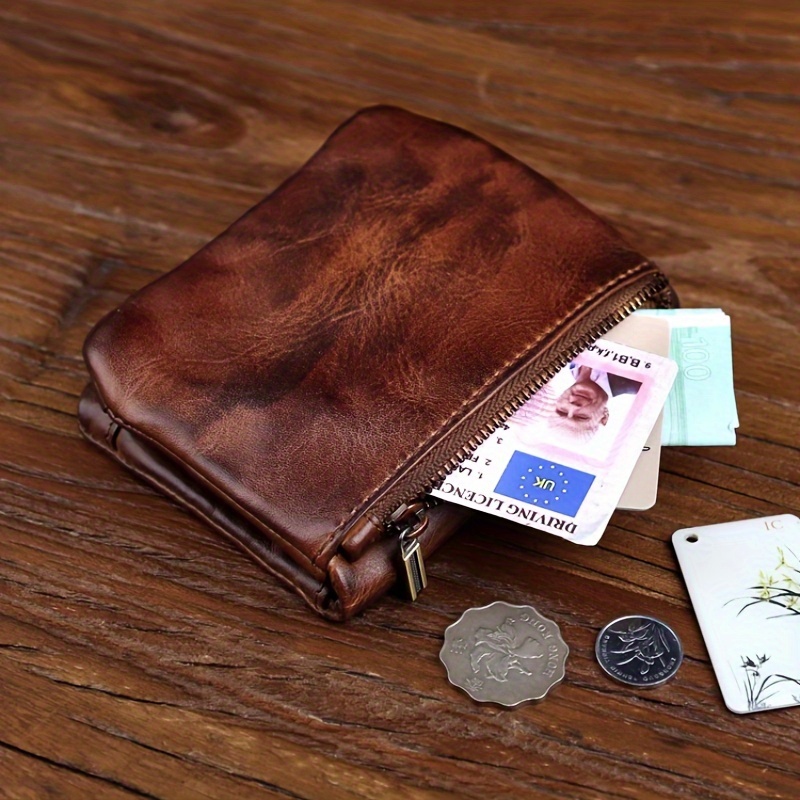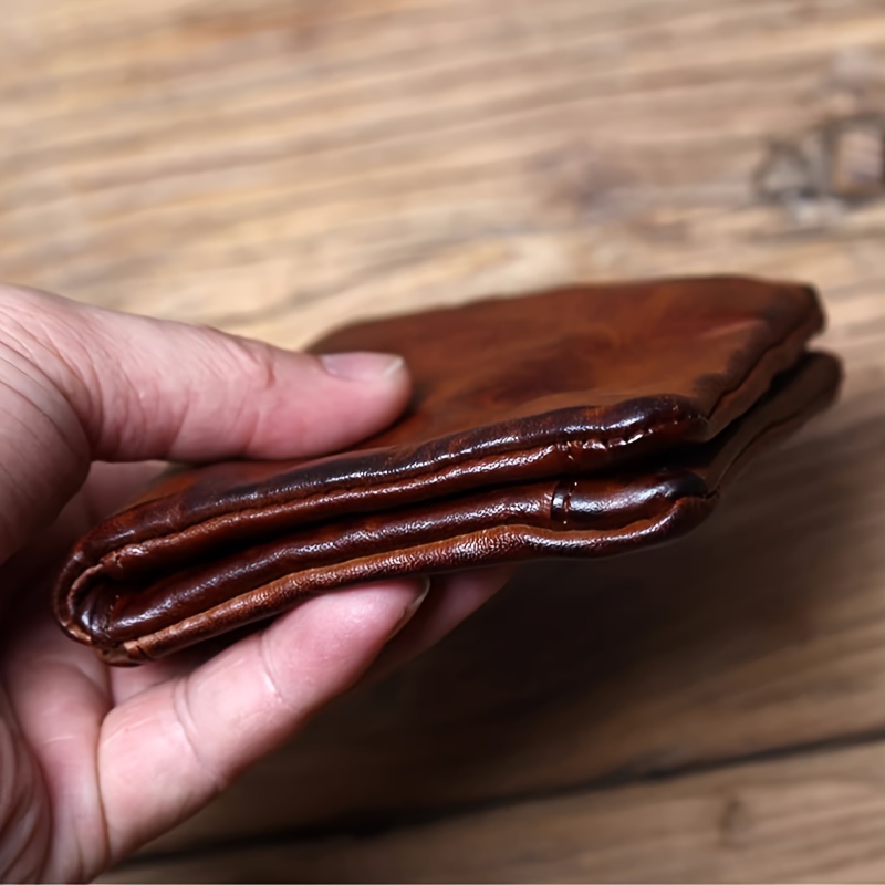 Vintage handmade genuine leather men's wallet - large capacity, multiple card slots
