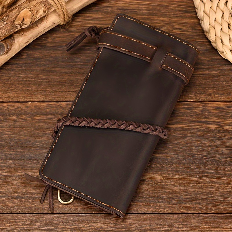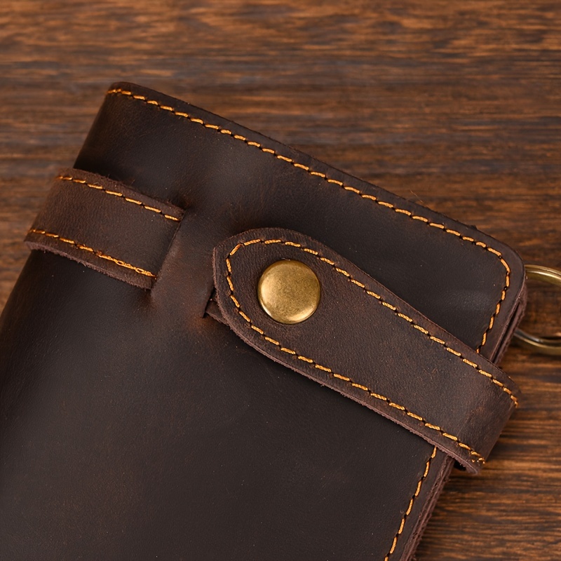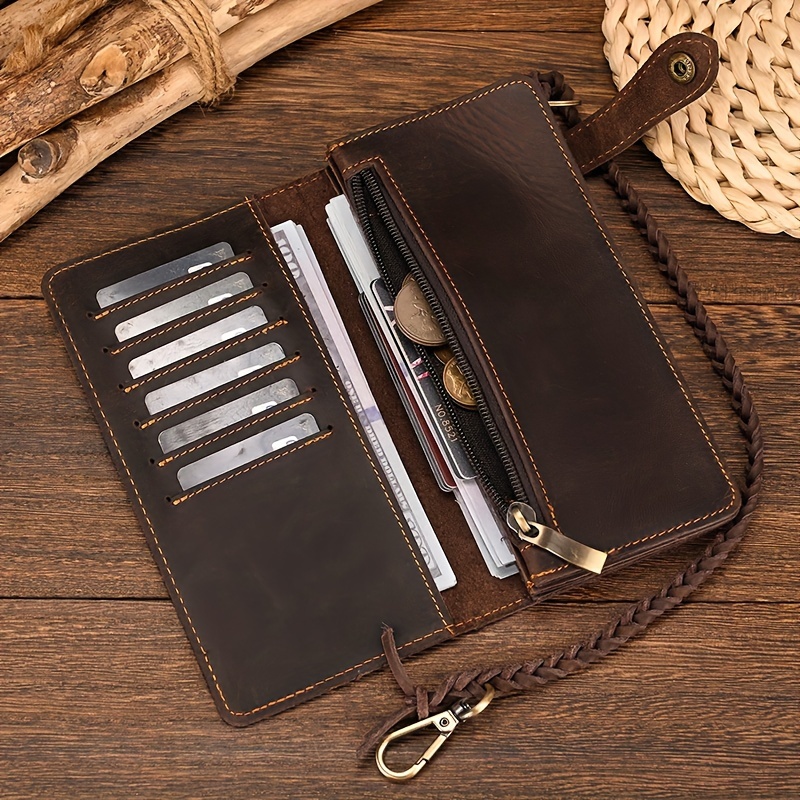 Retro Crazy Horse Leather Long Wallet with Chain Anti theft Men's Genuine Leather Multi slot Two fold Wallet