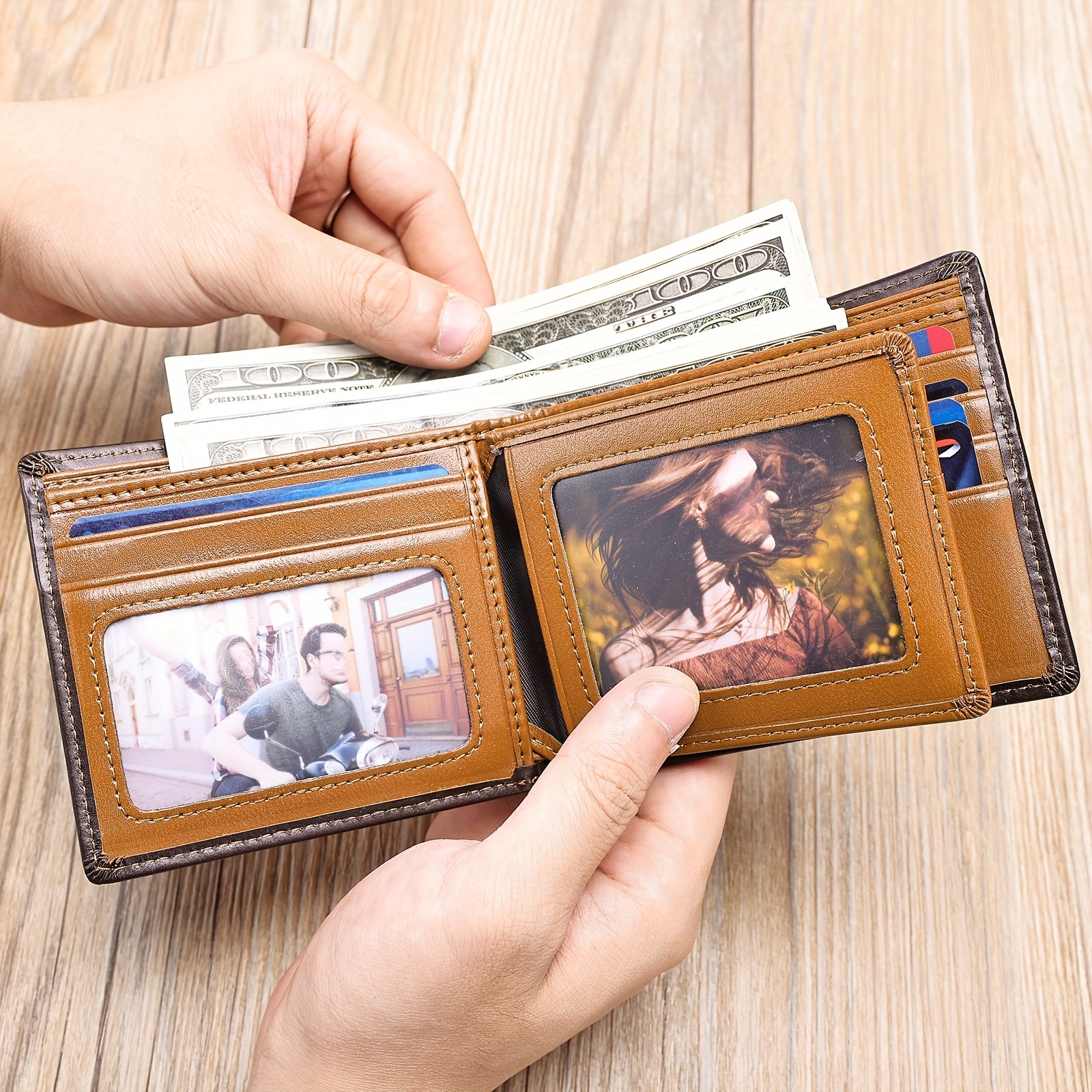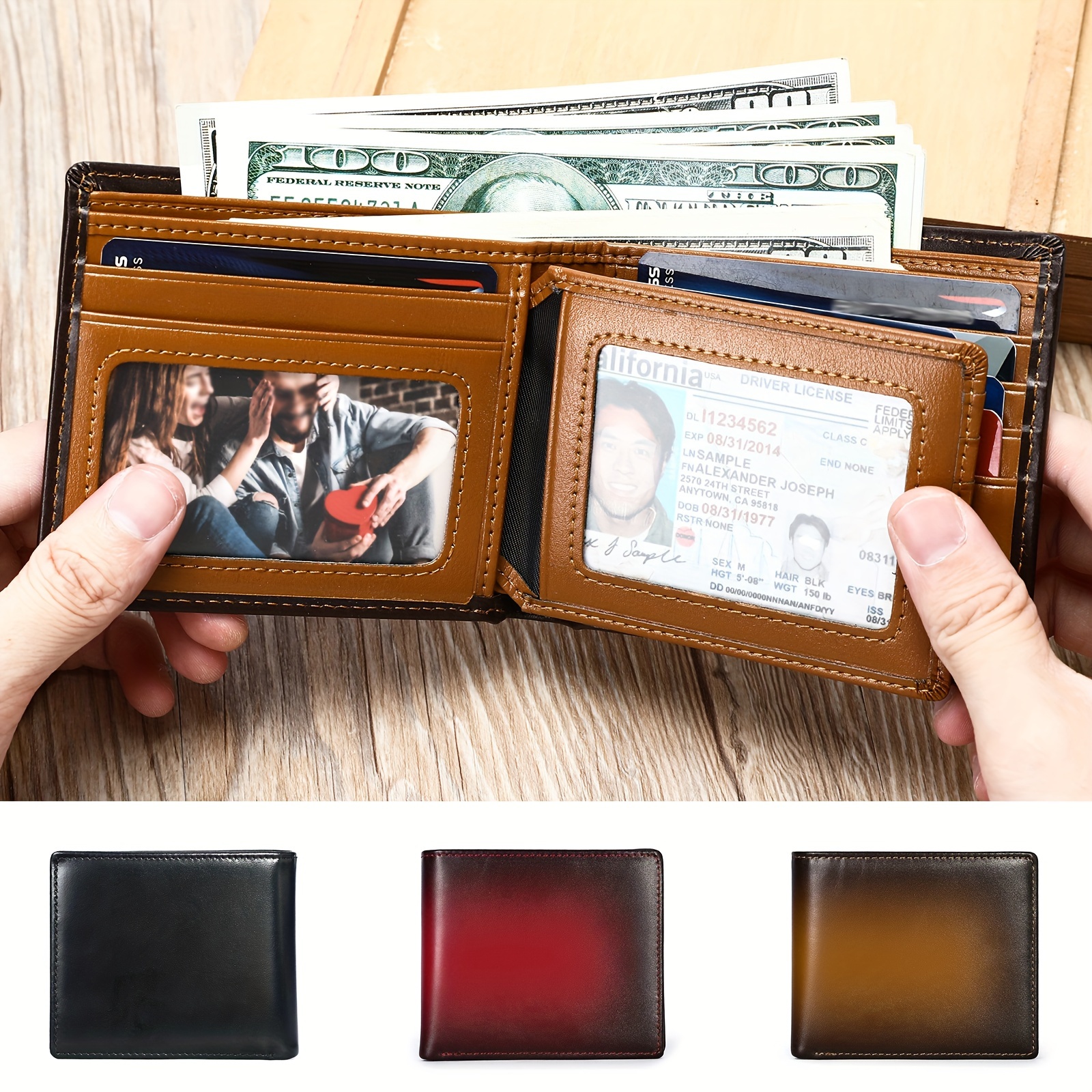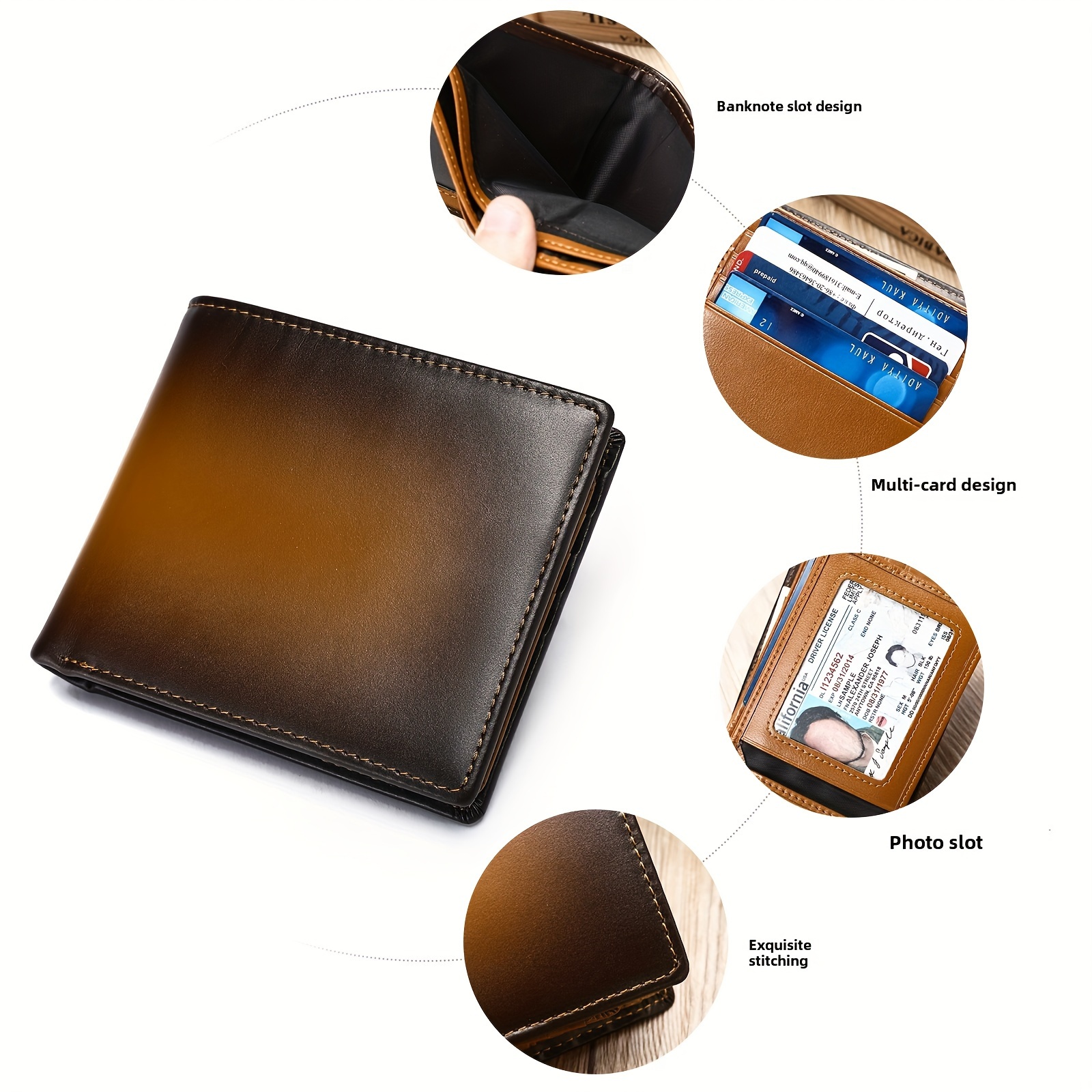 Vintage genuine leather men's wallet, non-woven material, multiple card slots, large capacity, handbag style