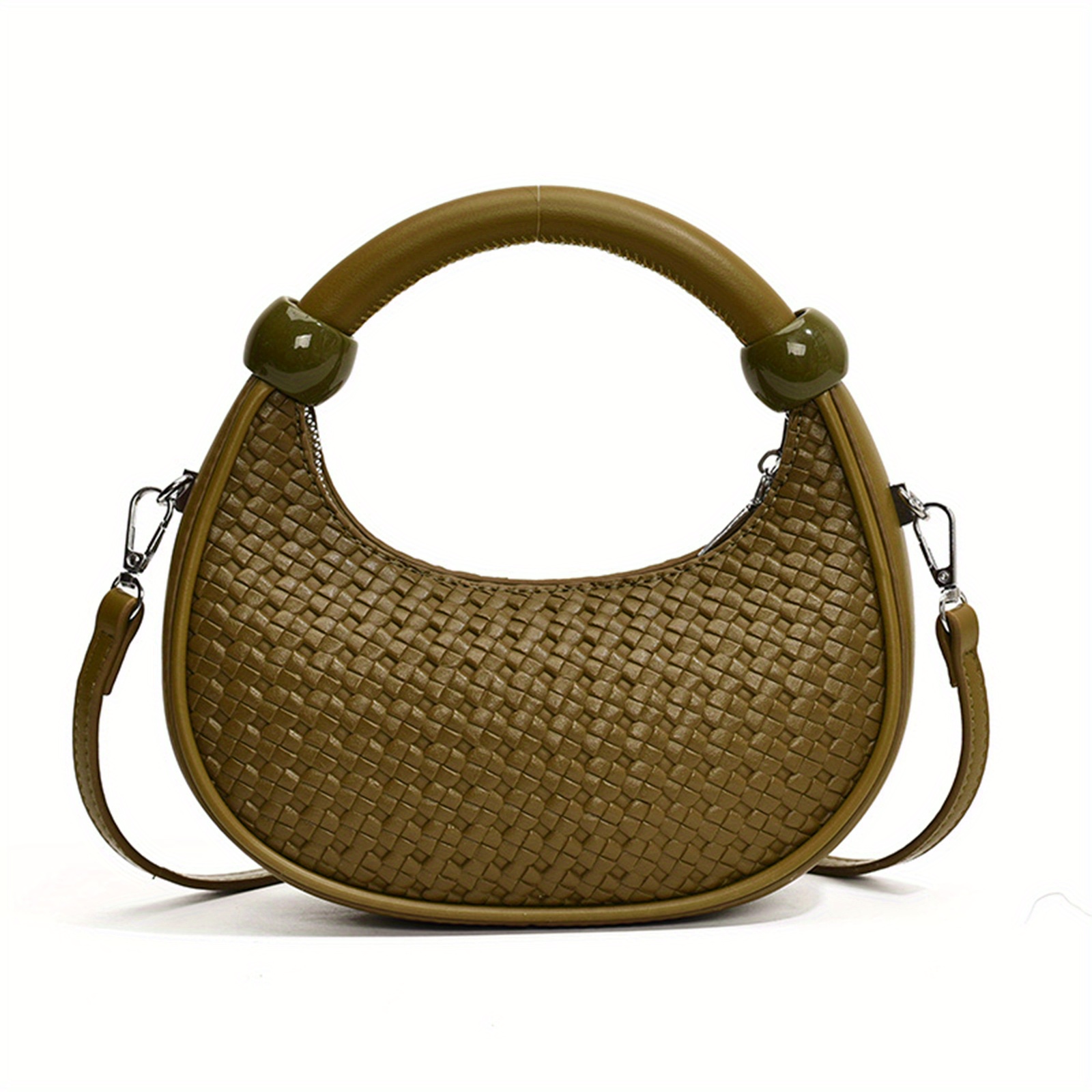 Women's woven handbag shoulder bag lightweight crescent crossbody bag