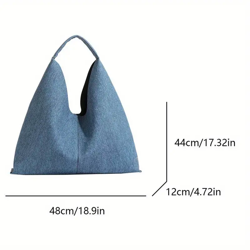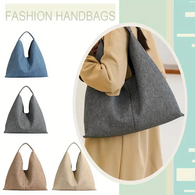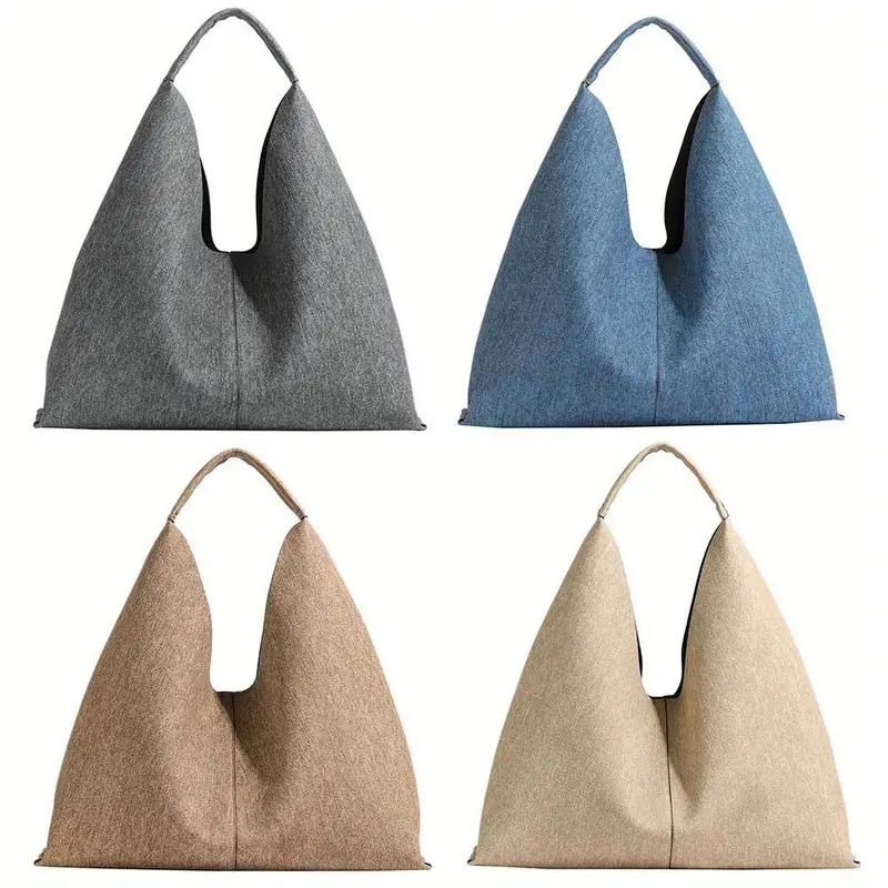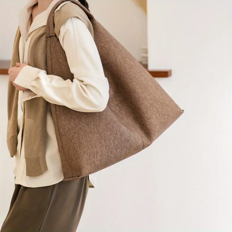 Ladies' solid color fabric handbag with magnetic buckle and polyester lining - casual style single shoulder handbag